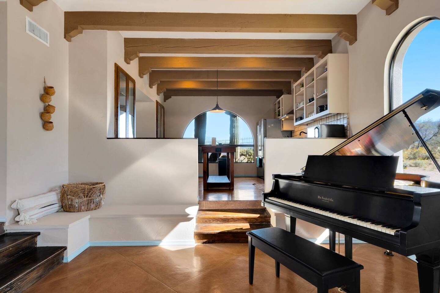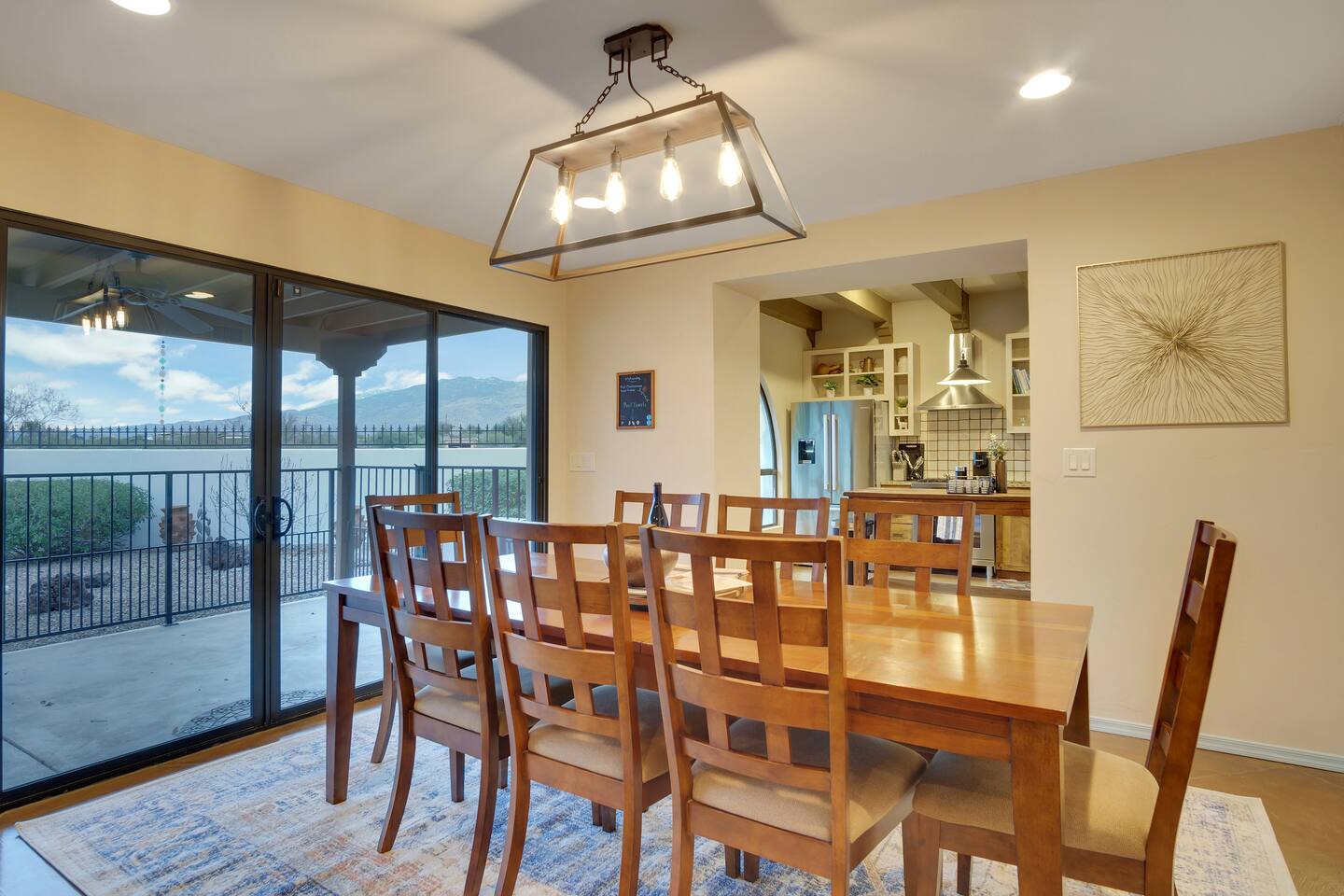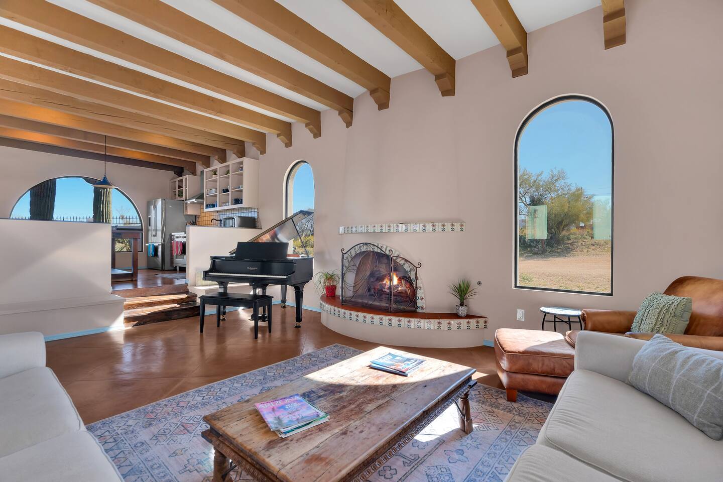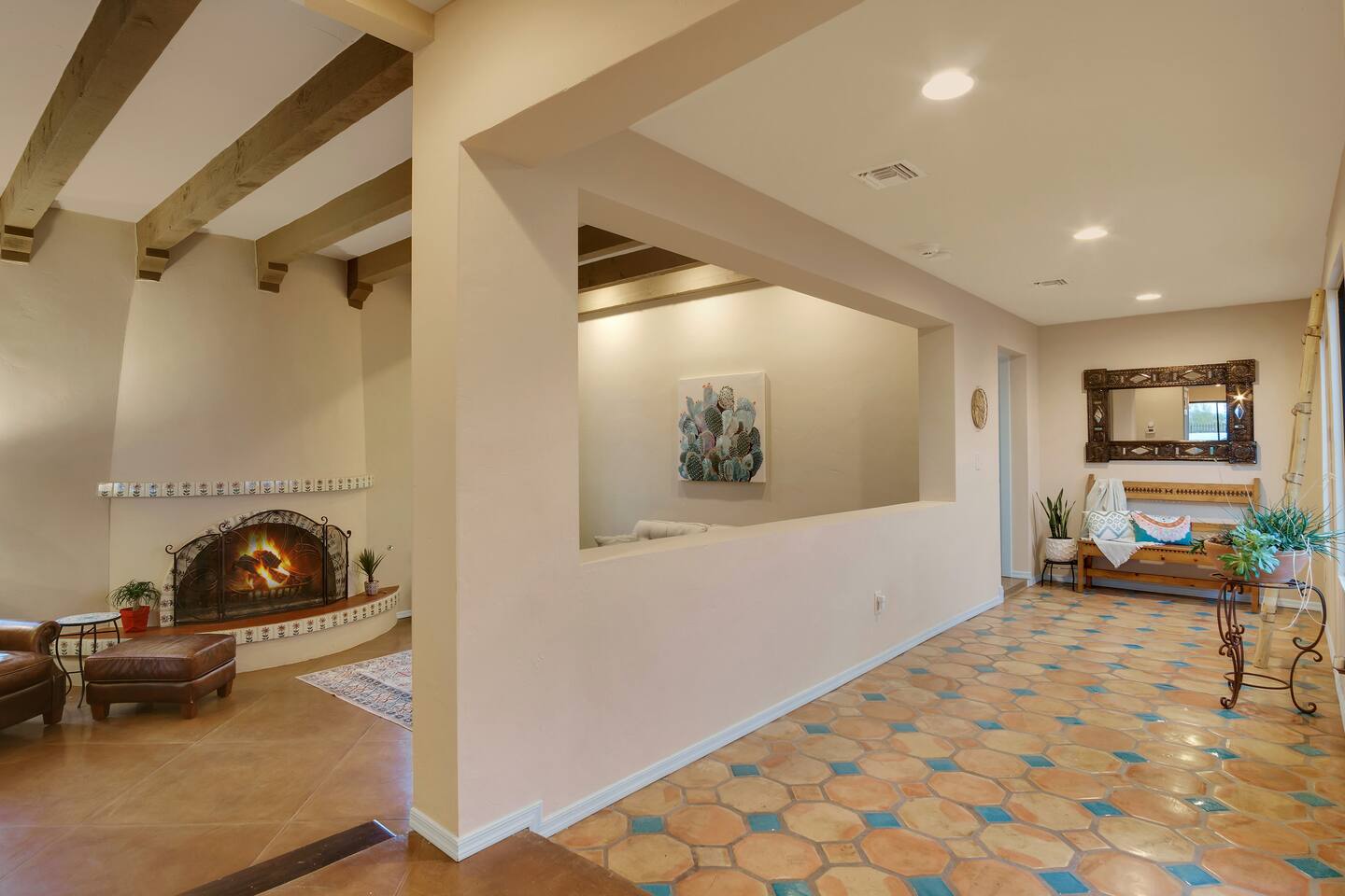 📍 Nearby Adventures 6 mins ➔ Saguaro National Park East 🌵 11 mins ➔ Houston's Horseback Riding 🐎 20 mins ➔ Tanque Verde Falls 💧 25 mins ➔ Sabino Canyon 🥾 23 mins ➔ Colossal Cave 🕳️ 58 mins ➔ Top of Mt. Lemmon 🌄 Here's what you can expect at this charming hacienda we set up just for you! 🛌 2 King Bedrooms with private ensuite bathrooms → Featuring antique vanities + fluffy white towels 🛌 2 Additional King Bedrooms that share another lovely bathroom with antique vanity and fluffy towels 🛏️ 1 Queen Bedroom/Office Combo → Includes a comfy bed, desk, and optional Pack ’n Play 🚻 Half bath also available for added convenience 🛋️ Living & Dining 🔥 Cozy beehive gas fireplace framed by arched windows 🎹 Grand piano in the living room—your stage for the weekend 🎵 Record player ready for slow mornings and late-night spins. 🎬 Leather couch + surround sound + 50" Roku TV 🍽️ Dining table seats 8 👩🍳 Fully stocked kitchen with modern appliances and pantry staples 🏊♂️ Outdoor Fun & Serenity 🌞 Heated pool under wide desert skies 💦 Three-person jacuzzi 🌴 Hammock strung in the shade for napping or stargazing 🎯 Pool floats and goggles 🏓 Full-size ping pong table — rally, compete, or settle family scores. 🎯 Ready to level up the fun? Challenge your crew to an epic laser tag showdown right here on the property! 🍼 Traveling with little ones? We’ve got you covered with all the baby essentials you need including: baby monitor, bath, high chair, bibs, dishes, outlet covers, bassinet, pack n play etc. If you need more space - check out our other listings for the converted horse barn guest house that can be rented as well (private and separate from the main house)