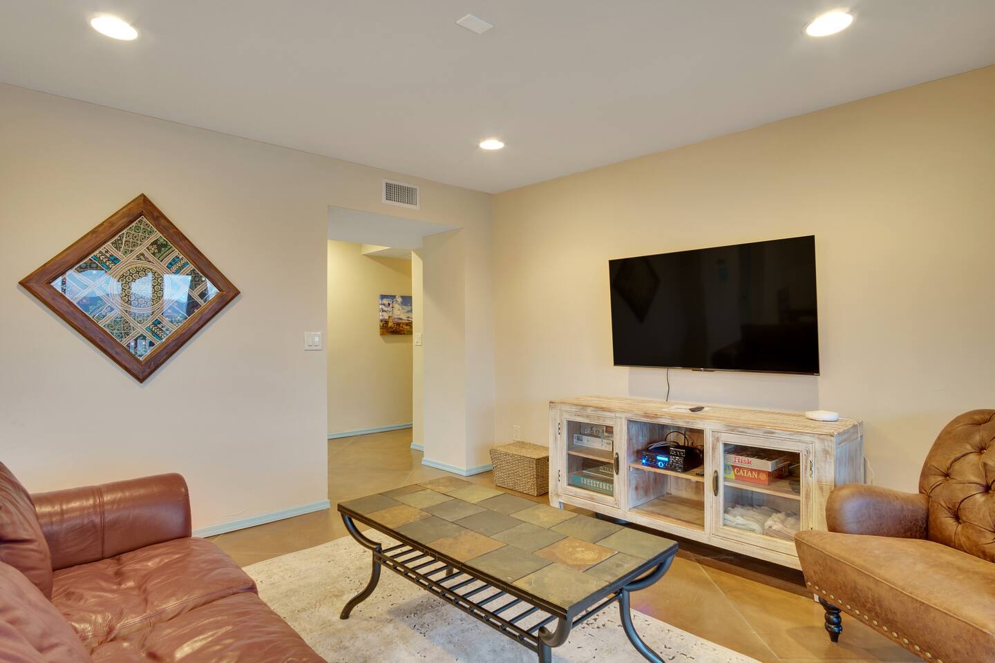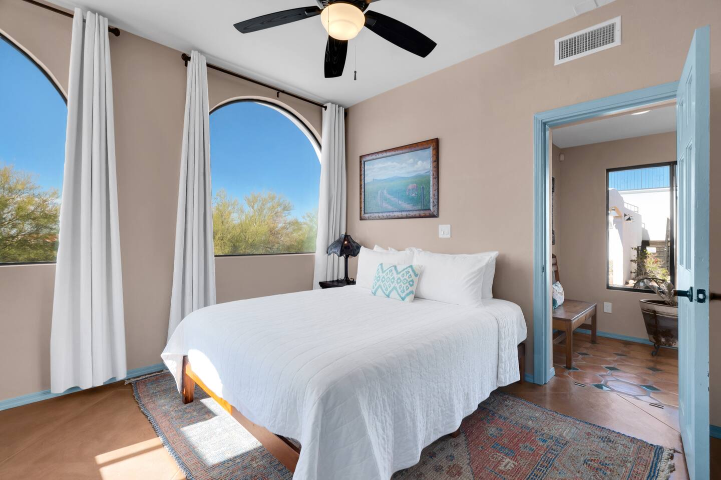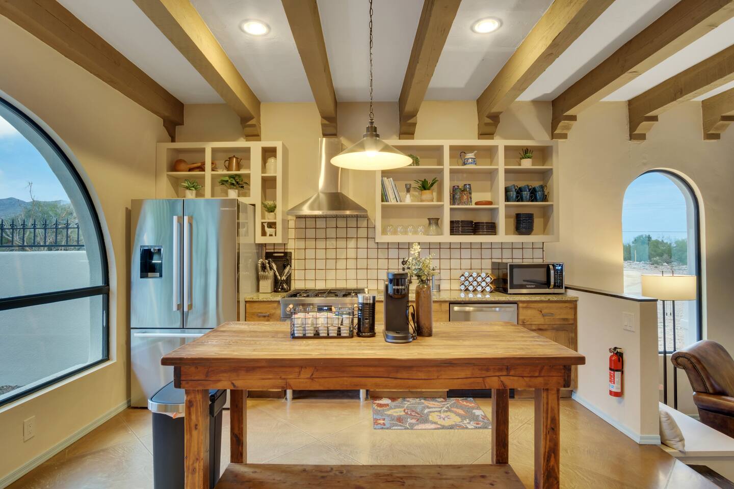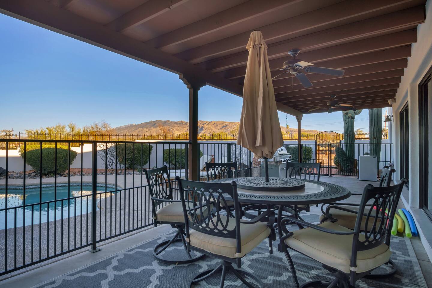 📍 Nearby Adventures 6 mins ➔ Saguaro National Park East 🌵 11 mins ➔ Houston's Horseback Riding 🐎 20 mins ➔ Tanque Verde Falls 💧 25 mins ➔ Sabino Canyon 🥾 23 mins ➔ Colossal Cave 🕳️ 58 mins ➔ Top of Mt. Lemmon 🌄 Here's what you can expect at this charming hacienda we set up just for you! 🛌 2 King Bedrooms with private ensuite bathrooms → Featuring antique vanities + fluffy white towels 🛌 2 Additional King Bedrooms that share another lovely bathroom with antique vanity and fluffy towels 🛏️ 1 Queen Bedroom/Office Combo → Includes a comfy bed, desk, and optional Pack ’n Play 🚻 Half bath also available for added convenience 🛋️ Living & Dining 🔥 Cozy beehive gas fireplace framed by arched windows 🎹 Grand piano in the living room—your stage for the weekend 🎵 Record player ready for slow mornings and late-night spins. 🎬 Leather couch + surround sound + 50" Roku TV 🍽️ Dining table seats 8 👩🍳 Fully stocked kitchen with modern appliances and pantry staples 🏊♂️ Outdoor Fun & Serenity 🌞 Heated pool under wide desert skies 💦 Three-person jacuzzi 🌴 Hammock strung in the shade for napping or stargazing 🎯 Pool floats and goggles 🏓 Full-size ping pong table — rally, compete, or settle family scores. 🎯 Ready to level up the fun? Challenge your crew to an epic laser tag showdown right here on the property! 🍼 Traveling with little ones? We’ve got you covered with all the baby essentials you need including: baby monitor, bath, high chair, bibs, dishes, outlet covers, bassinet, pack n play etc. If you need more space - check out our other listings for the converted horse barn guest house that can be rented as well (private and separate from the main house)